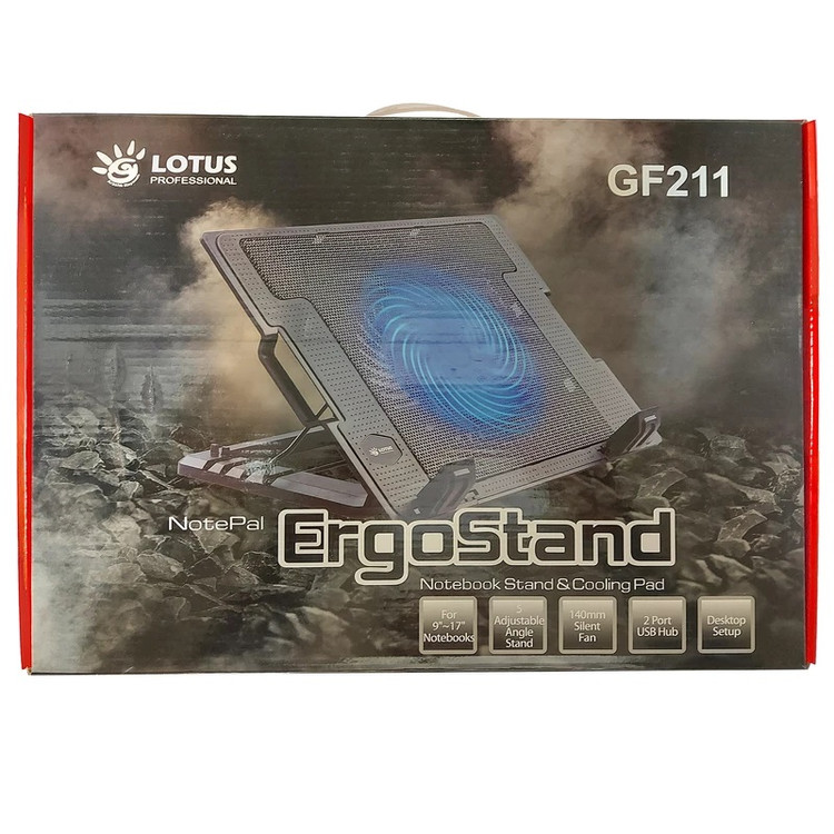 کول پد لوتوس مدل GF211 یک پایه خنک کننده با فن قوی با سرعت حدود 1000 دور بر دقیقه و ابعاد 38x27x6 سانتیمتر می باشد. همچنین طراحی شده برای گیمینگ، دارای نور پردازی و مناسب برای لپ تاپ های حدود 14 الی 16 اینچ می باشد. این کول پد دارای تنظیم زاویه جهت همسان سازی با زاویه گردن شما است،