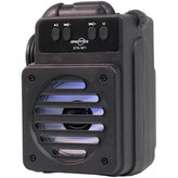اسپیکر بی سیم قابل حمل گریت نایس مدل GTS1971 این اسپیکر امکان دریافت امواج رادیو FM برای دوستداران برنامه های رادیویی را دارد و موفق به کسب استاندارد سلامت و ایمنی محصول شامل CE / RoHS و FCC شده است . برخورداری از کلید های فیزیکی تعبیه شده بر روی بدنه به منظور مدیریت فایل در حال پخش، ولوم، Mood و … کار با این اسپیکر را بسیار راحت کرده است. تامین انرژی از طریق باتری داخلی قابل شارژ توسط درگاه میکرو یو اس بی تعبیه شده بر روی بدنه و کابل همراه که داخل کارتن اسپیکر موجود است .این اسپیکر مجهز به درایو 3 اینچی با امکان پخش صدا با کیفیت HD، بهره مندی از نورپردازی داخلی RGB جهت ایجاد جلوه بصری زیبا است و متریال ساخت بدنه پلاستیک با کیفیت مقاوم در برابر فشار و ضربه، تعبیه دسته در قسمت پشتی محصول به منظور سهولت در حمل و نقل و در نهایت اتصال بی سیم توسط رابط بلوتوث، پشتیبانی از فلش مموری USB و حافظه رم میکرو SD تا حداکثر ظرفیت 32 گیگابایت به منظور پخش فایل های ذخیره شده از قابلیت های اسپیکر بلوتوثی رم و فلش خور Greatnice GTS-1971 است .