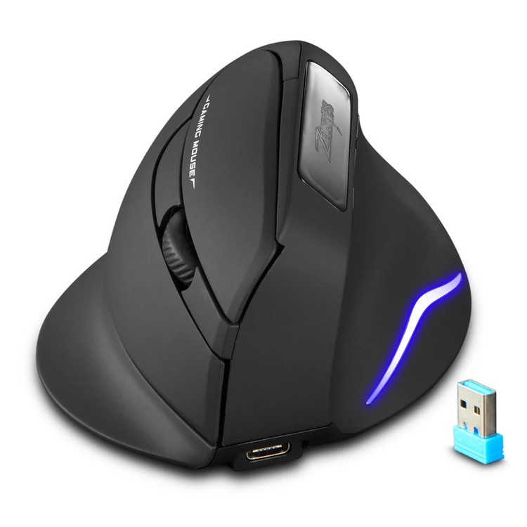 این یک ماوس خاص از نوع عمودی(VERTICAL) است در این نوع ماوس بجای اینکه شما دست خود را با ماوس منطبق کنید،ماوس طوری طراحی شده تا با حالت طبیعی دست شما منطبق باشد،در واقع هدف از ساخت این ماوس این بوده که شما احساس راحتی بیشتری داشته باشید و فشار کمتری به دست شما وارد شود.از جهت دقت این ماوس دقتی برابر با 2400 DPI دارد که دقت و سرعت کلیک بالایی به ماوس میدهد.دقت ماوس را میتوان از طریق کلید تغییر DPI در 3 دقت متفاوت قرار داد. کلید روشن خاموش این ماوس سه حالت دارد که در یک حالت چراغ نواری ماوس روشن و در حالت دیگر خاموش خواهد بود.همچنین این ماوس از باتری قابل شارژ داخلی استفاده میکند و نیازی به باتری قلمی یا نیم قلمی ندارد.