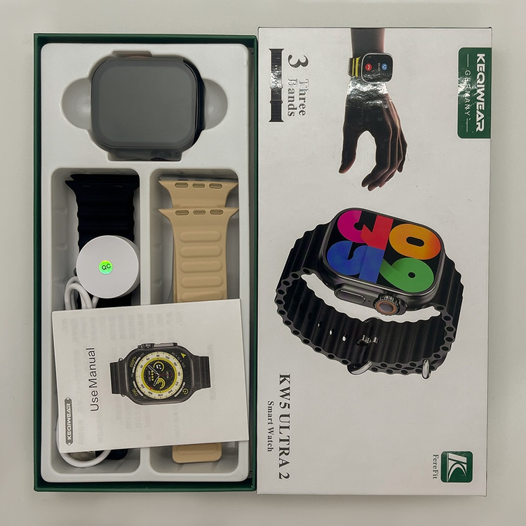 ساعت هوشمند مدل KW5 ULTRA 2 یک ساعت هوشمند و مدرن است که به شما امکان میدهد با تمام ویژگیهای جذابش به راحتی در محل کار، ورزش و حتی مواقع رسمی، خوش تیپ و شیک باشید.این ساعت هوشمند دارای قابلیتهای فراوانی است. با قابلیت مکالمه (از طریق اتصال به بلوتوث) و پخش موسیقی، شما میتوانید از تماس با دوستان و موسیقیهای مورد علاقهتان لذت ببرید. اما قابلیت برجستهتر این ساعت هوشمند، سنسورهای سلامتی فراوانی است که دارد. با پایش ضربان قلب، فشار خون، اکسیژن خون و…، این ساعت به شما کمک میکند تا سلامتی خود را بررسی کرده. به طور کلی، این ساعت هوشمند یک ابزار چندمنظوره است که علاوه بر ارائه زمان، اطلاعات سلامتی و فعالیت بدنی، امکاناتی را برای مکالمه، کنترل موسیقی و تعامل با دیگر دستگاهها نیز فراهم میکند همچنین این ساعت هوشمند دارای سه بند با تنوع رنگ است.