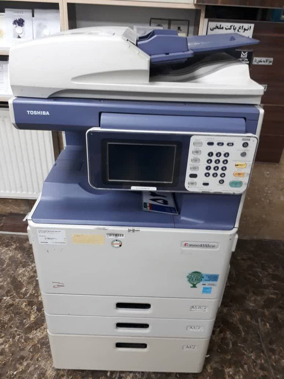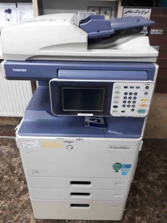 TOSHIBA e-studio 4555 دستگاه کپی و پرینتر رنگی که محصول کمپانی توشیبا می باشد، و از سرعت چاپ رنگی 45 برگ A3 در دقیقه با رزولوشن 600x1200dpi بهره می برد. 4555 از دستگاه های با سرعت مناسب و رده متوسط است، که برای کارهای ادارای با حجم کاری متوسط و پایین طراحی شده است. این دستگاه قابلیت های همچون کپی ، فکس ، اسکن و پرینت را دارد. همچنین دارای چاپ اتوماتیک دورو است، که در صرفه جویی وقت و زمان بسیار حائز اهمیت است. این دستگاه کپی به اتصال وای فای و بلوتوث ( اختیاری) مجهز شده ؛ که برای اتصال فلش مموری و تلفن همراه جهت چاپ اطلاعات کارایی بسیاری دارد.
