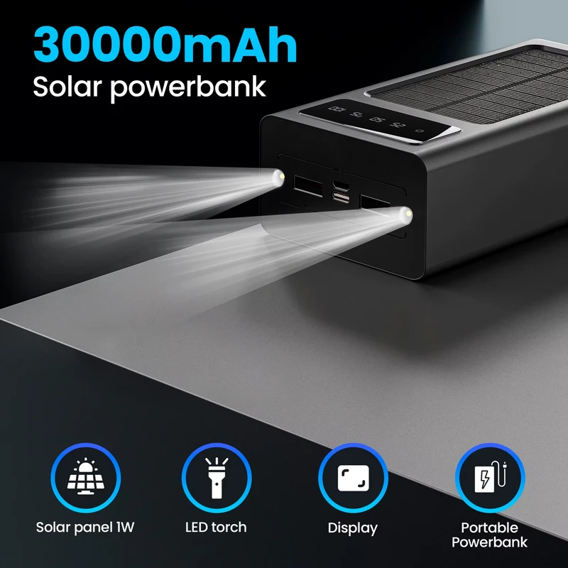 پاوربانک مدل 309 تولید یکی از برترین کارخانه های تولید کننده لوازم جانبی موبایل است. این پاوربانک دارای باتری با ظرفیت 30000 میلی آمپر ساعت بوده و با داشتن مزیت های مهم زیر از خیلی از پاوربانک های موجود در بازار متمایز گردیده است. این پاوربانک دارای پنل شارژ خورشیدی با توان حداکثر 1 وات بوده و می تواند در شرایط تابش نوری مناسب خود را شارژ کند. همچنین داشتن کابل های متصل به پاوربانک از نوع: Lightning و Type-C و Micro-USB و USB آن را بسیار خاص و پر طرفدار ، و استفاده از آن را برای کاربر بسیار آسان نموده است. علاوه بر وجود این کابل ها ، این دستگاه دارای 2 پورت خروجی USB و یک پورت Micro-USB و یک پورت Type-C است. همچنین 2 عدد LED نورانی روی قسمت بالای پاوربانک قرار دارد که در مواقع ضروری می توان از آن استفاده کرد. صفحه نمایشگر LED نیز برای نمایش میزان شارژ پاوربانک روی آن بصورت 4 حالته تعبیه شده است.